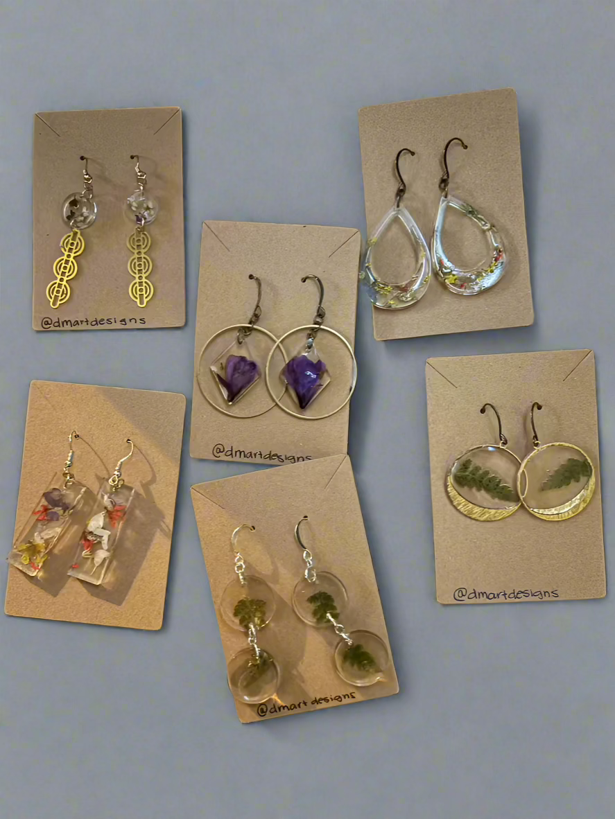Are you interested in sending me your clothing or an item to cyanotype? Or is there a certain plant, earring style, or jewelry color that you like? I accept custom orders!