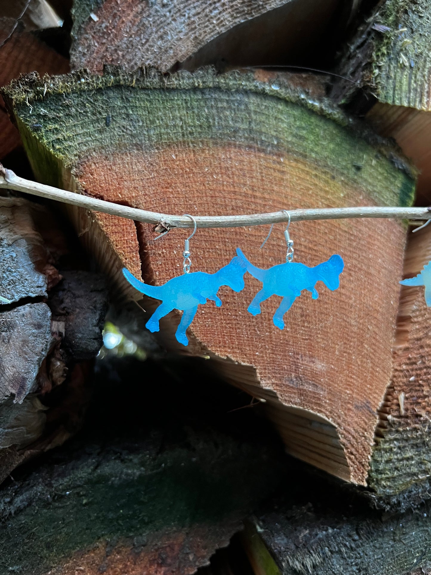 Silver hypoallergenic earring hooks. Glow in the dark blue Dino’s