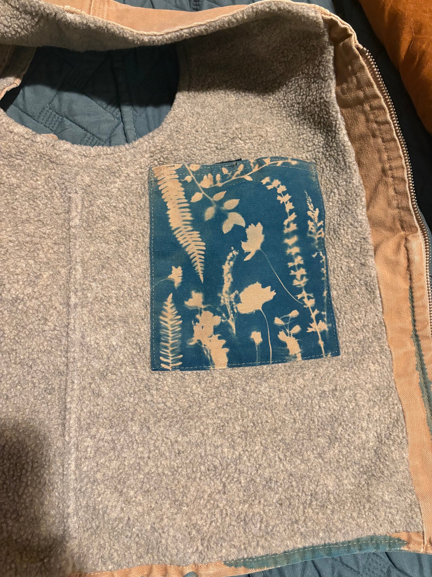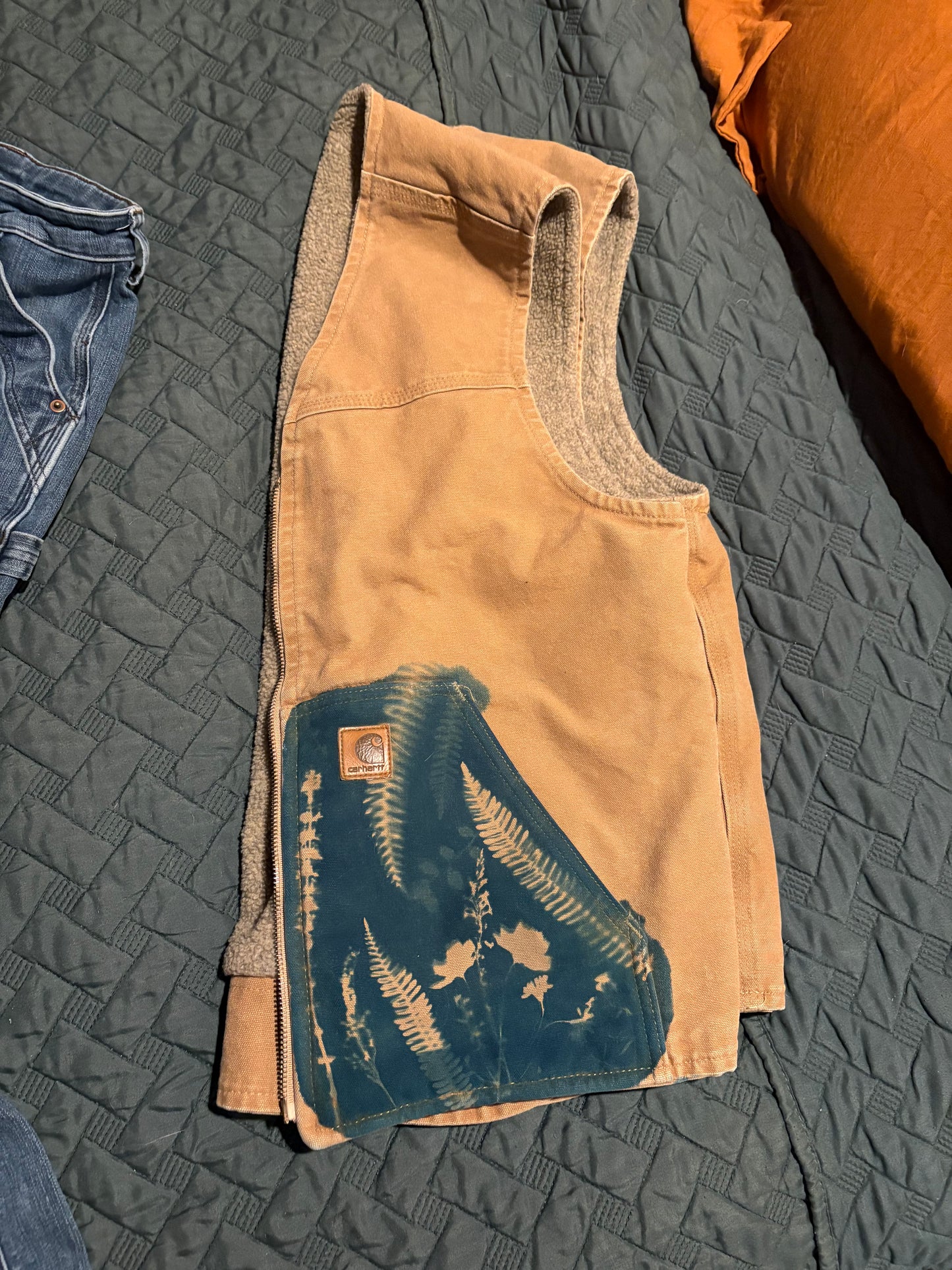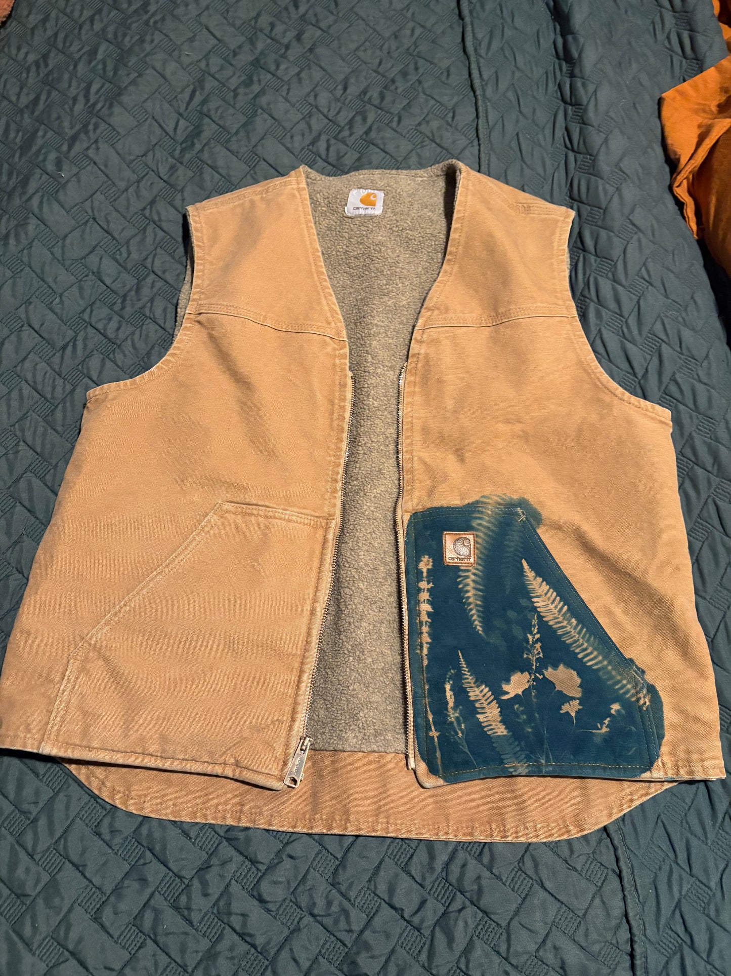 Upcycled vintage Carhartt unisex vest size large with cyanotype print