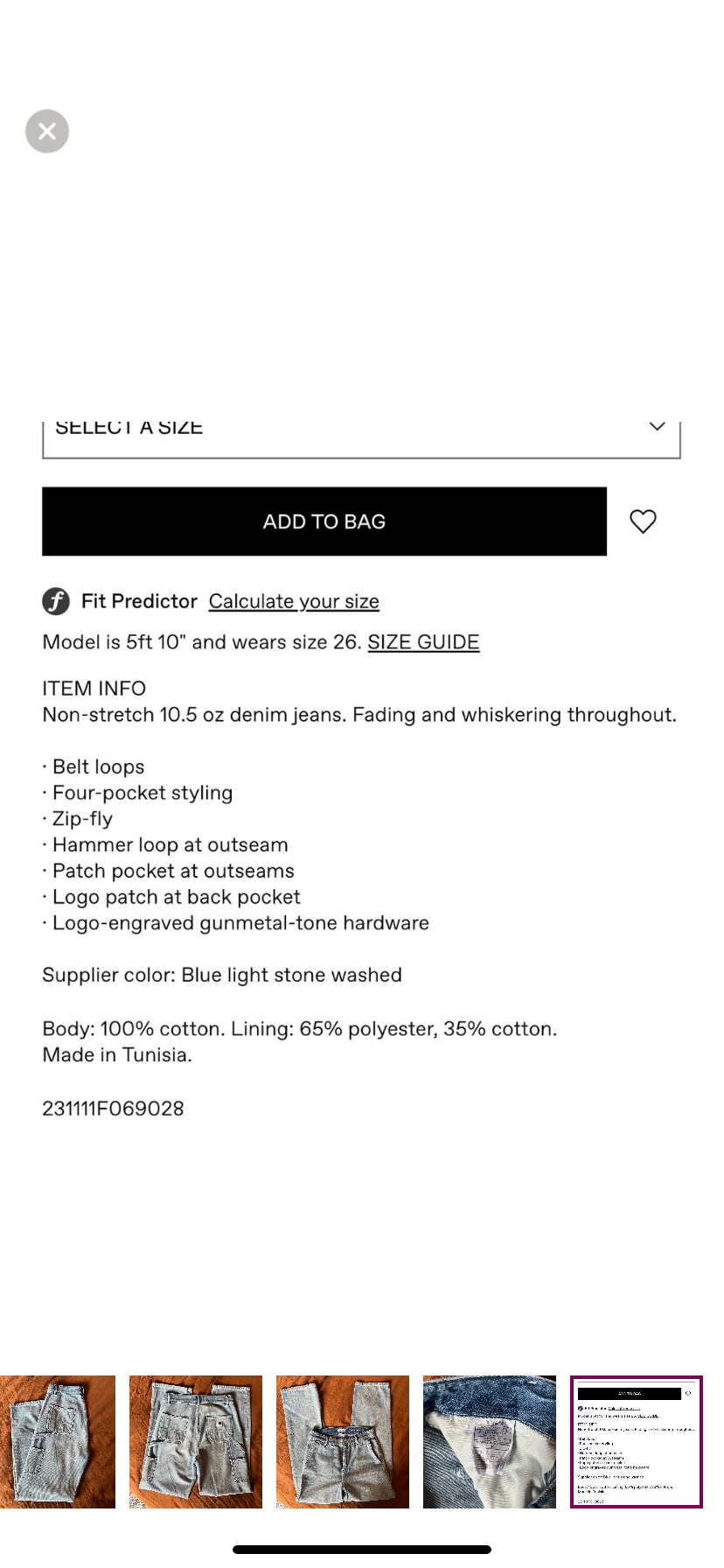 Non-stretch 10.5 oz denim jeans. Fading and whiskering throughout.