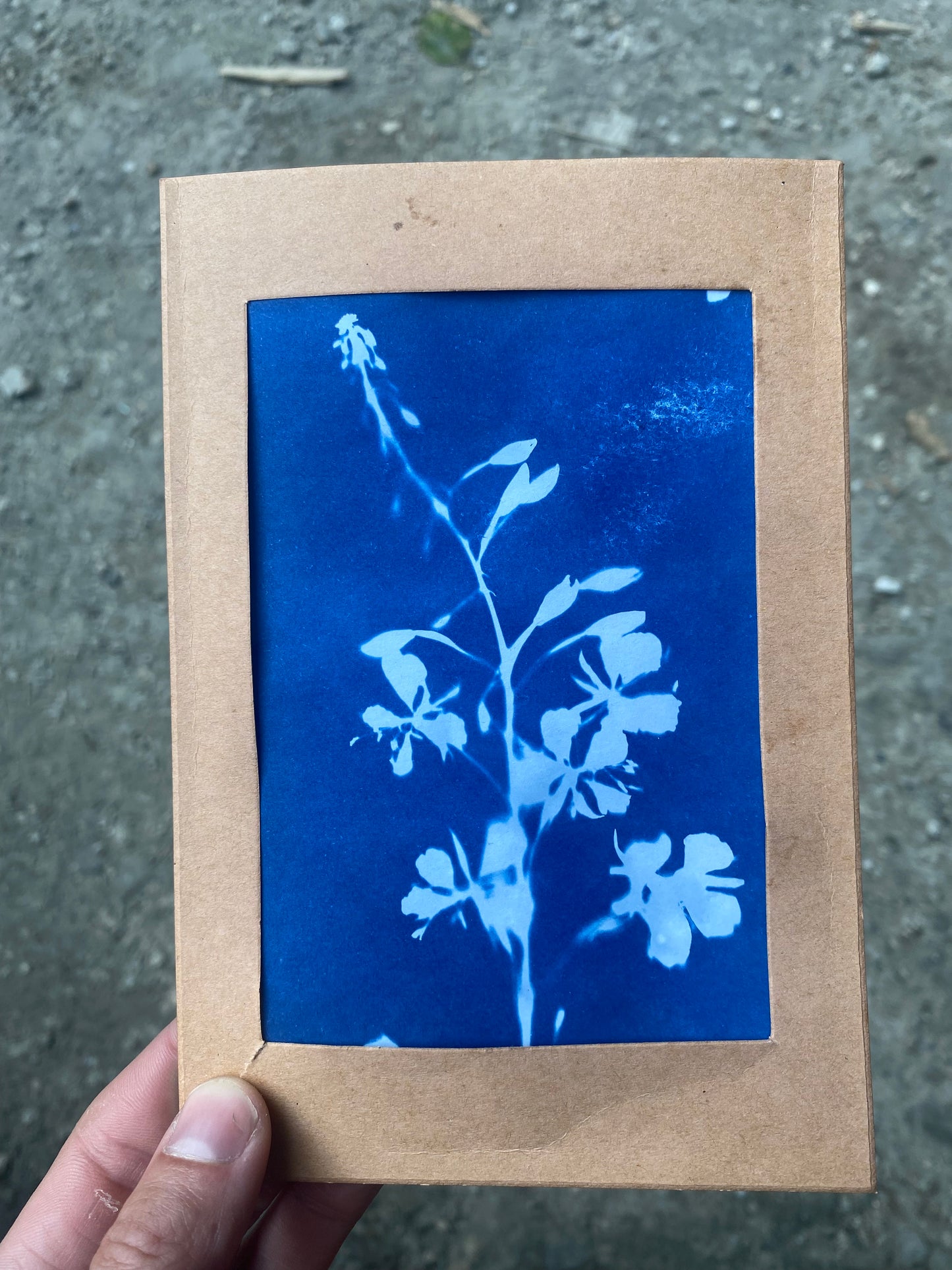 4x6” cardboard framed Cyanotype photograph. Fireweed flower