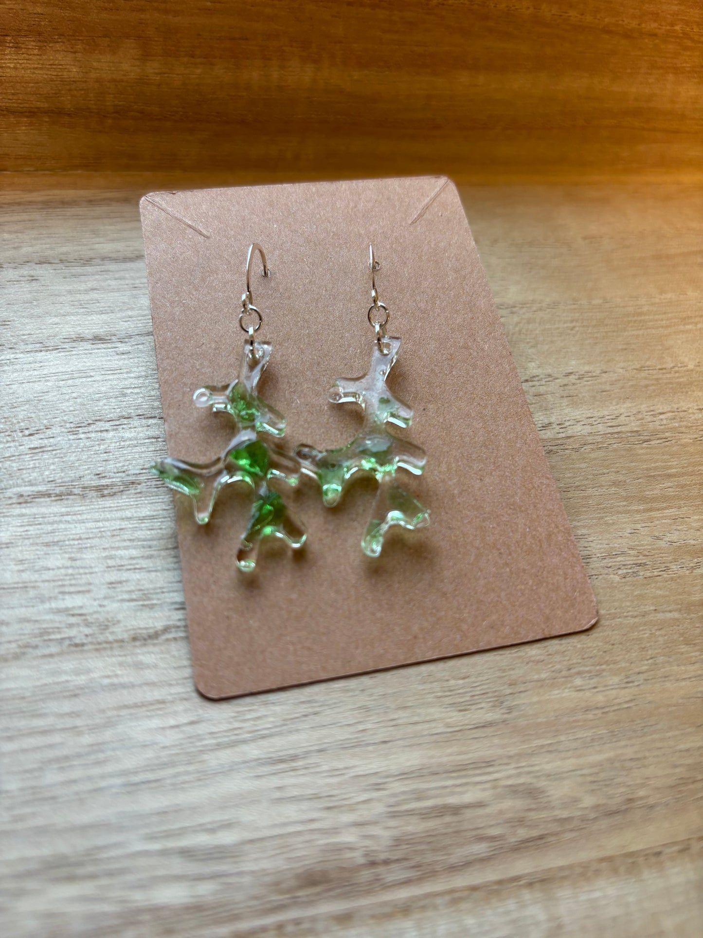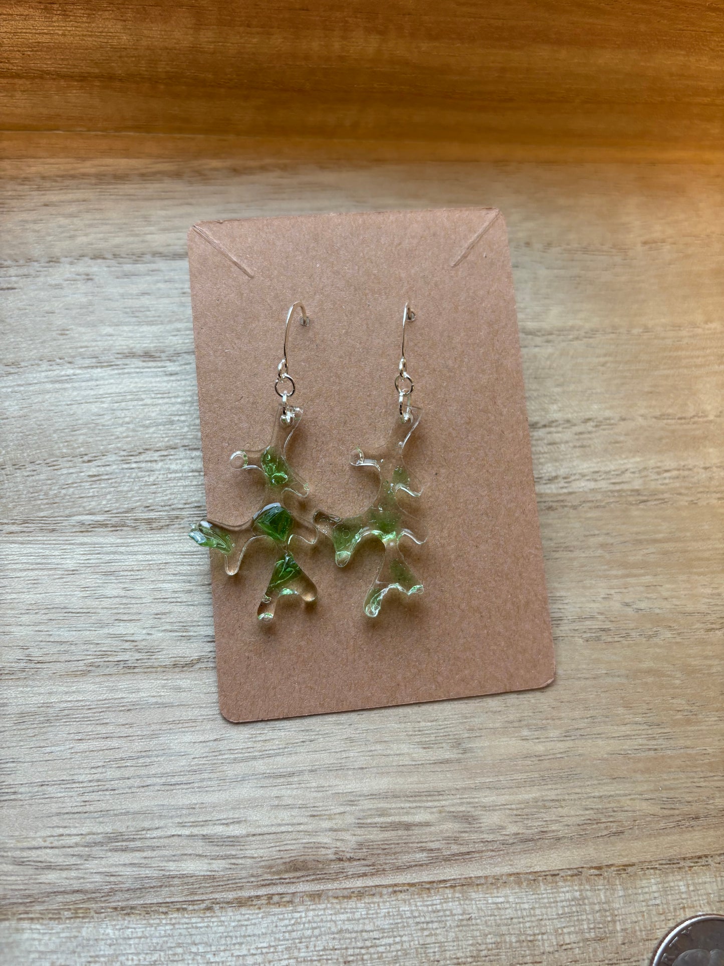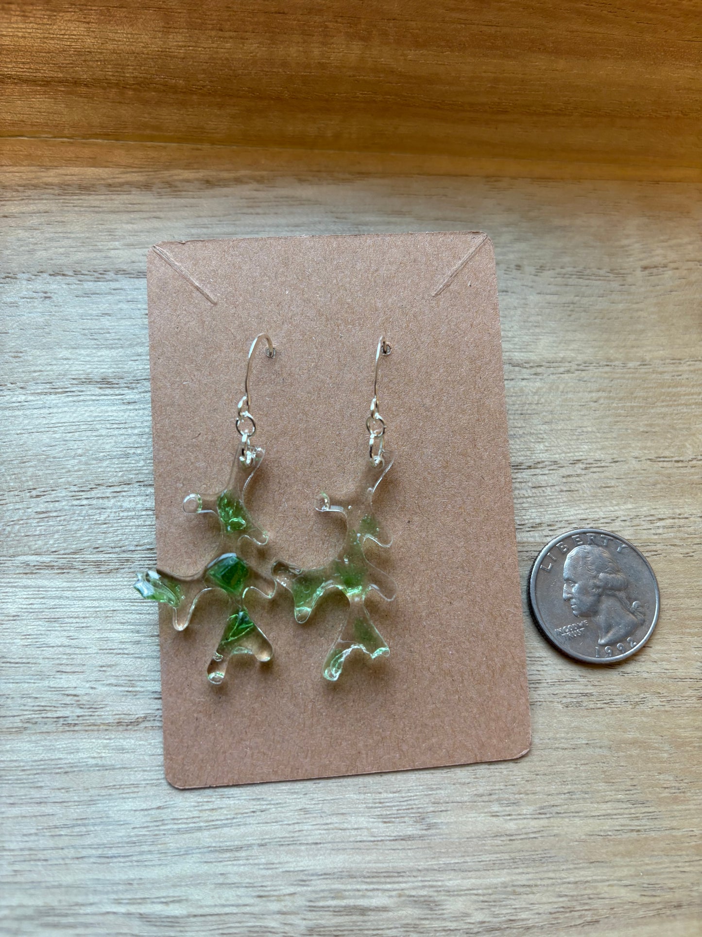 Green kelp shaped sea glass earrings. Earrings may not look identical to the ones in this photo and can be made to order.