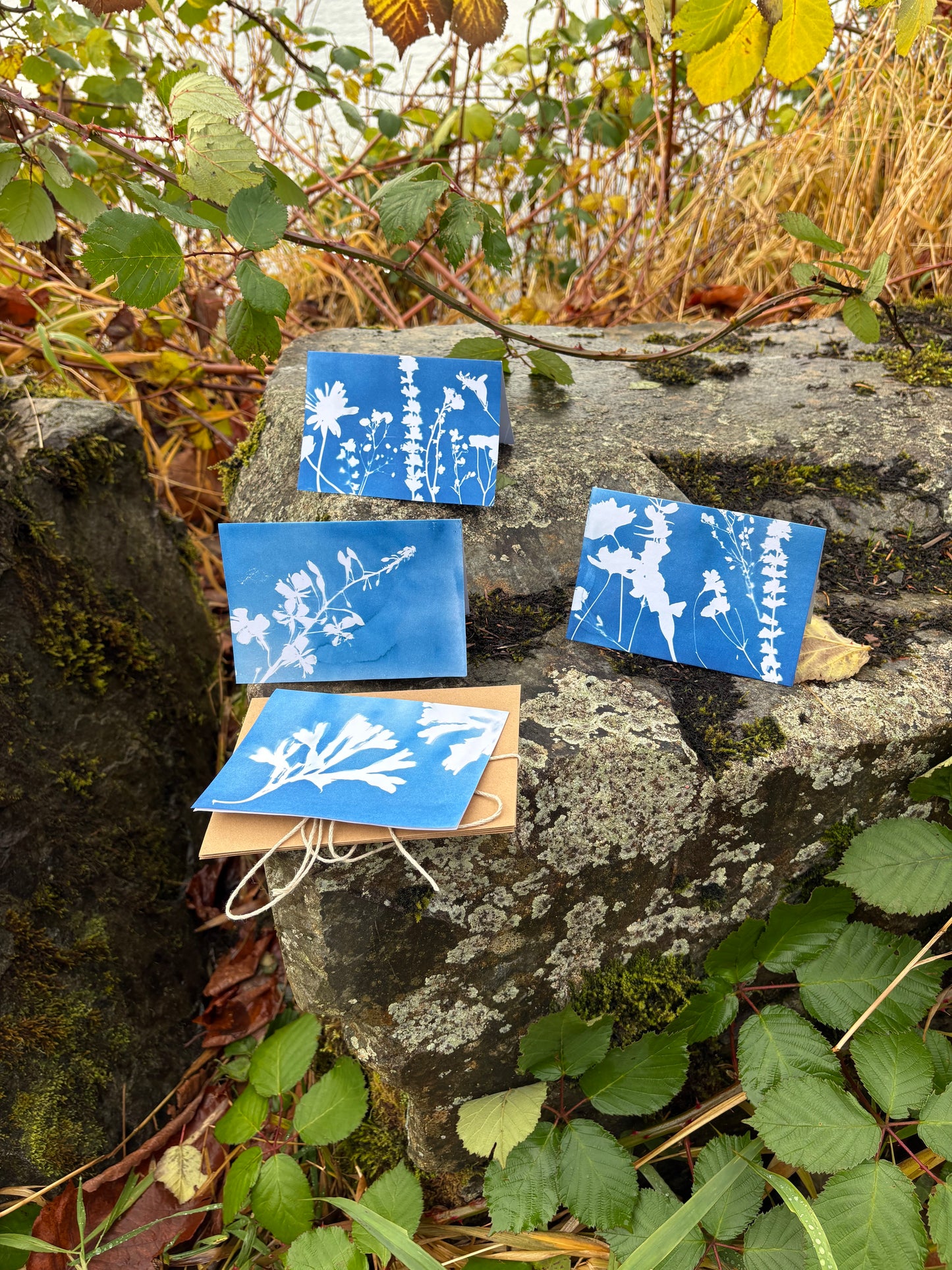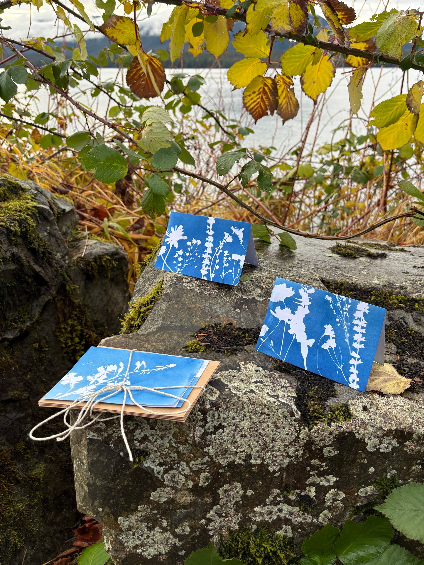 One of a kind cyanotype cards! The cards you get will not be the ones in this photo, and will be random, one of a kind prints of Alaska botanicals and wildflowers. Get a fun little surprise, support a small business, and gift someone a kind letter on a piece of art. Please allow 1-2 weeks for these to be made and shipped!