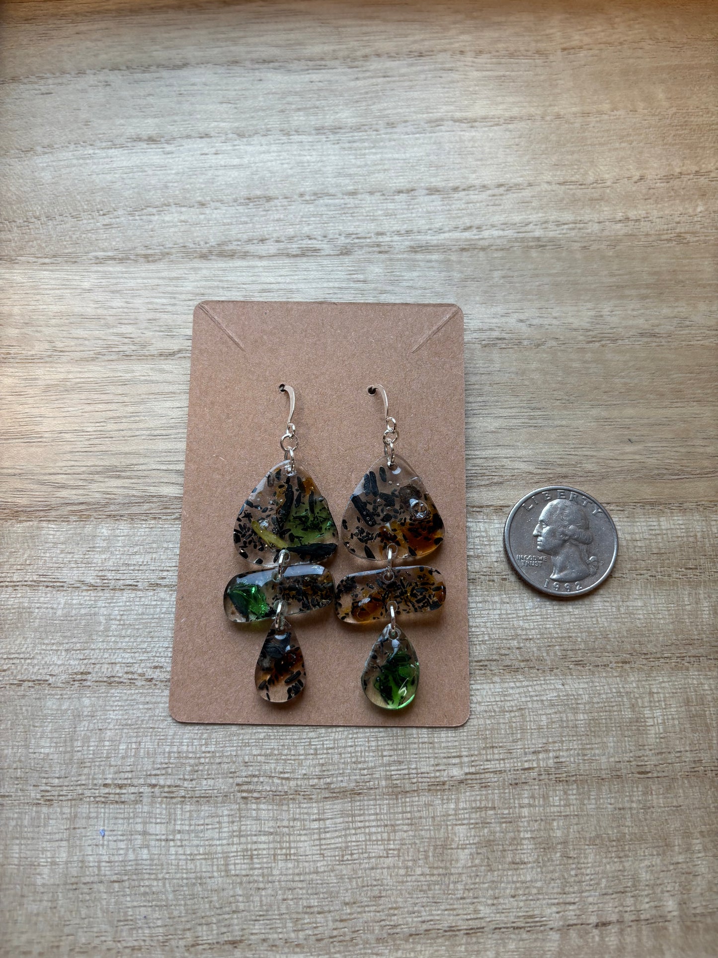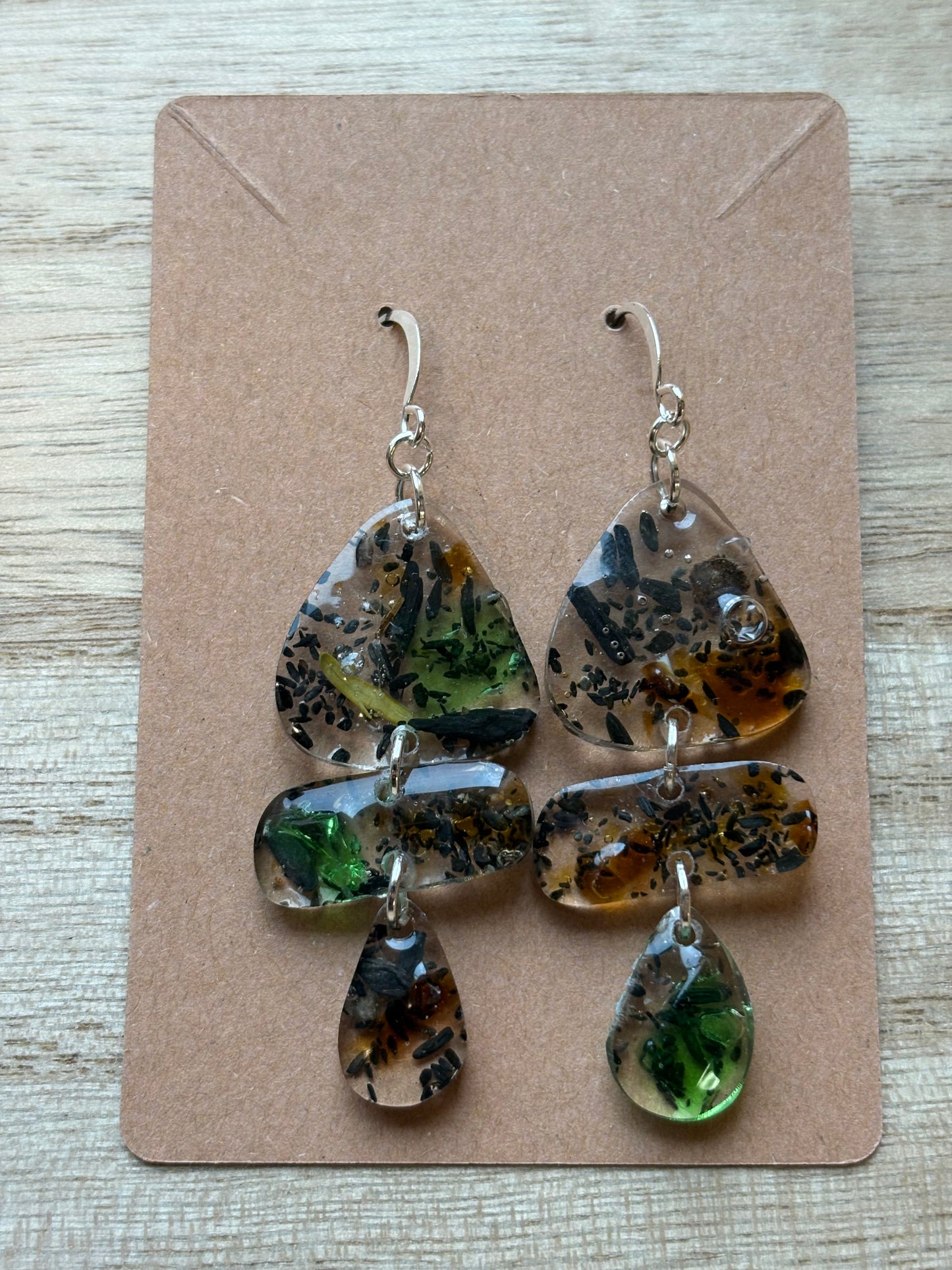 Multi colored sea glass abstract stone shaped sea glass earrings. These earrings also have Southeast Alaska beach sand in them!