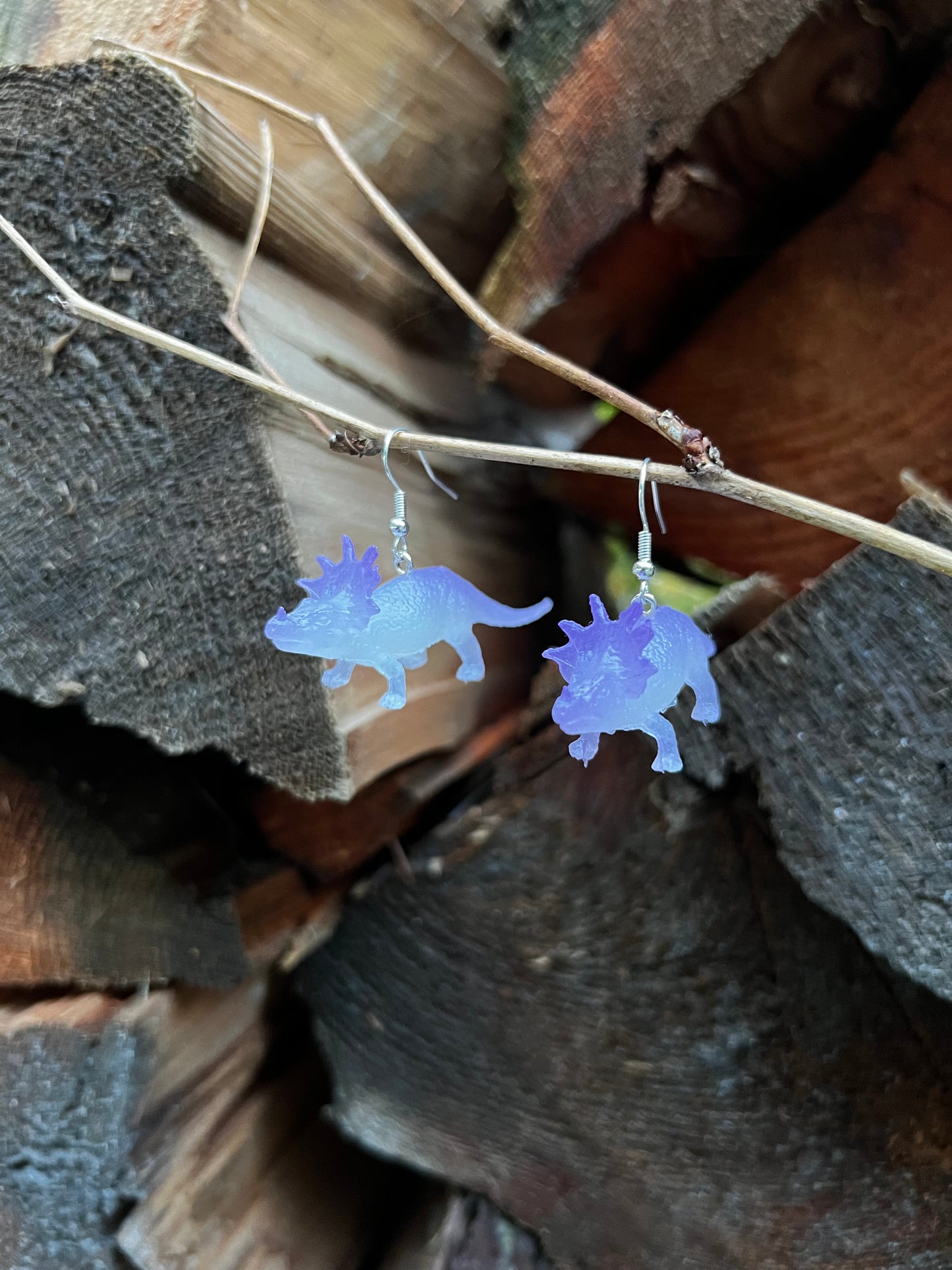 Silver hypoallergenic earring hooks, glow in the dark dinosaur earrings