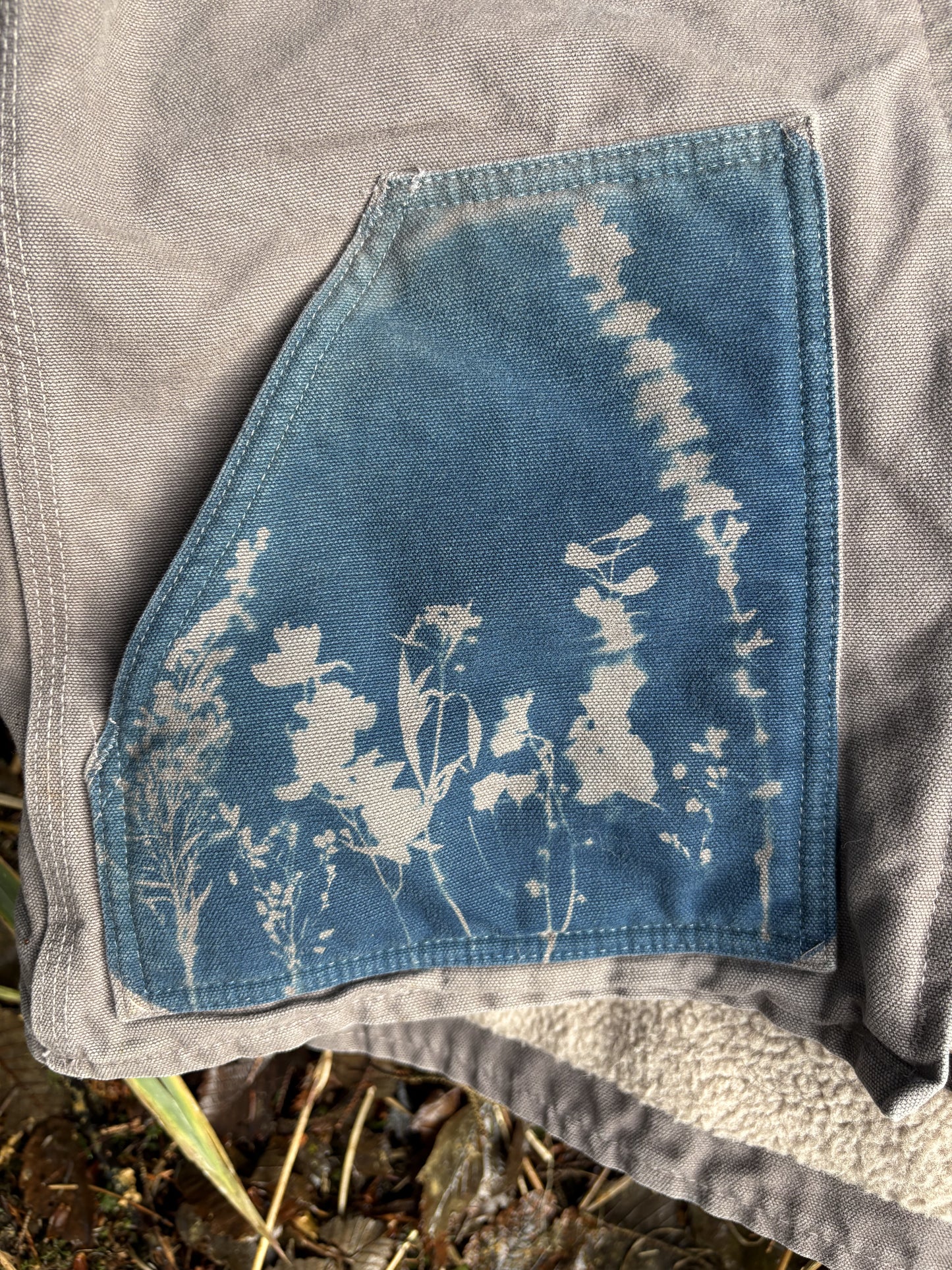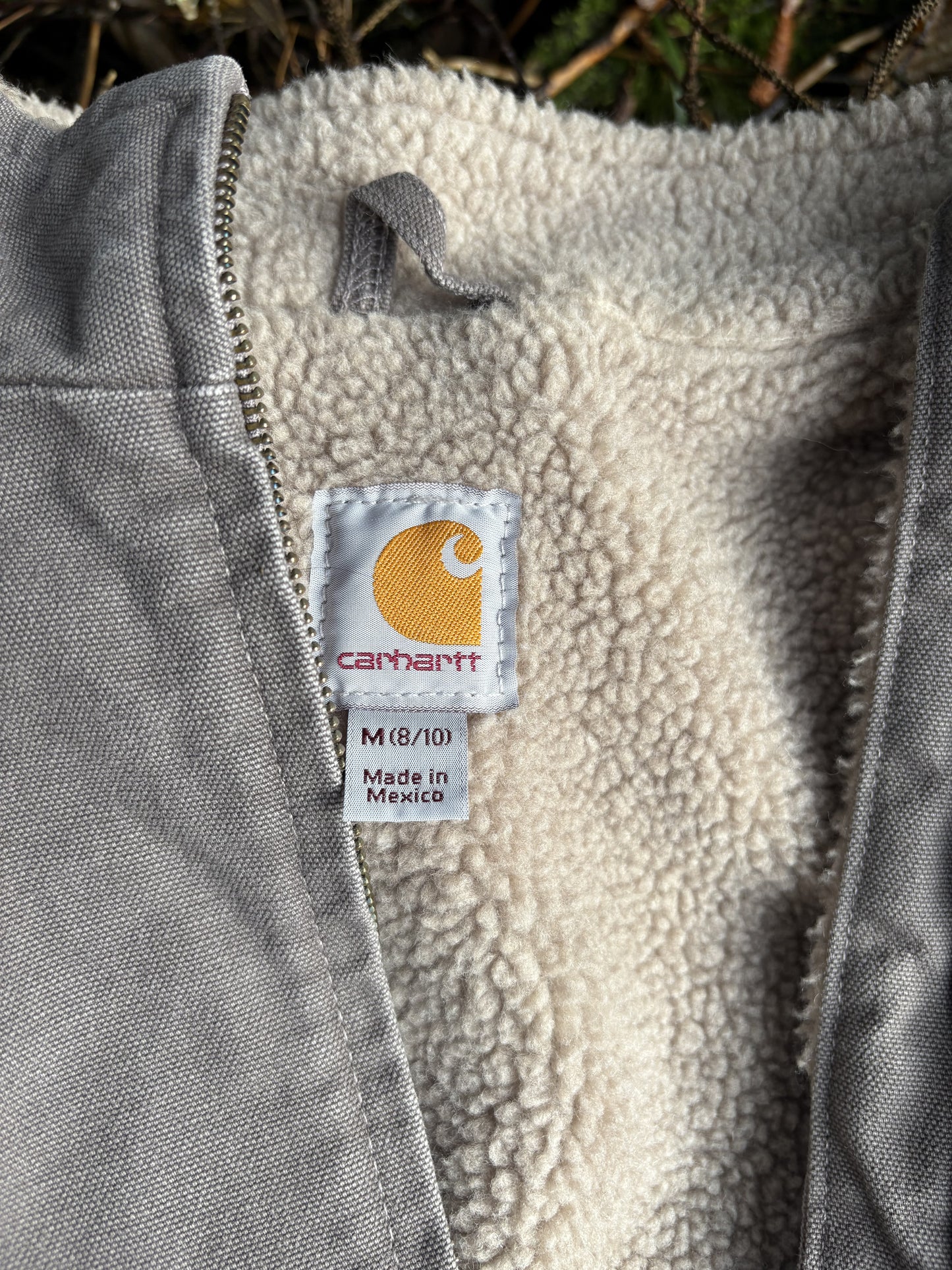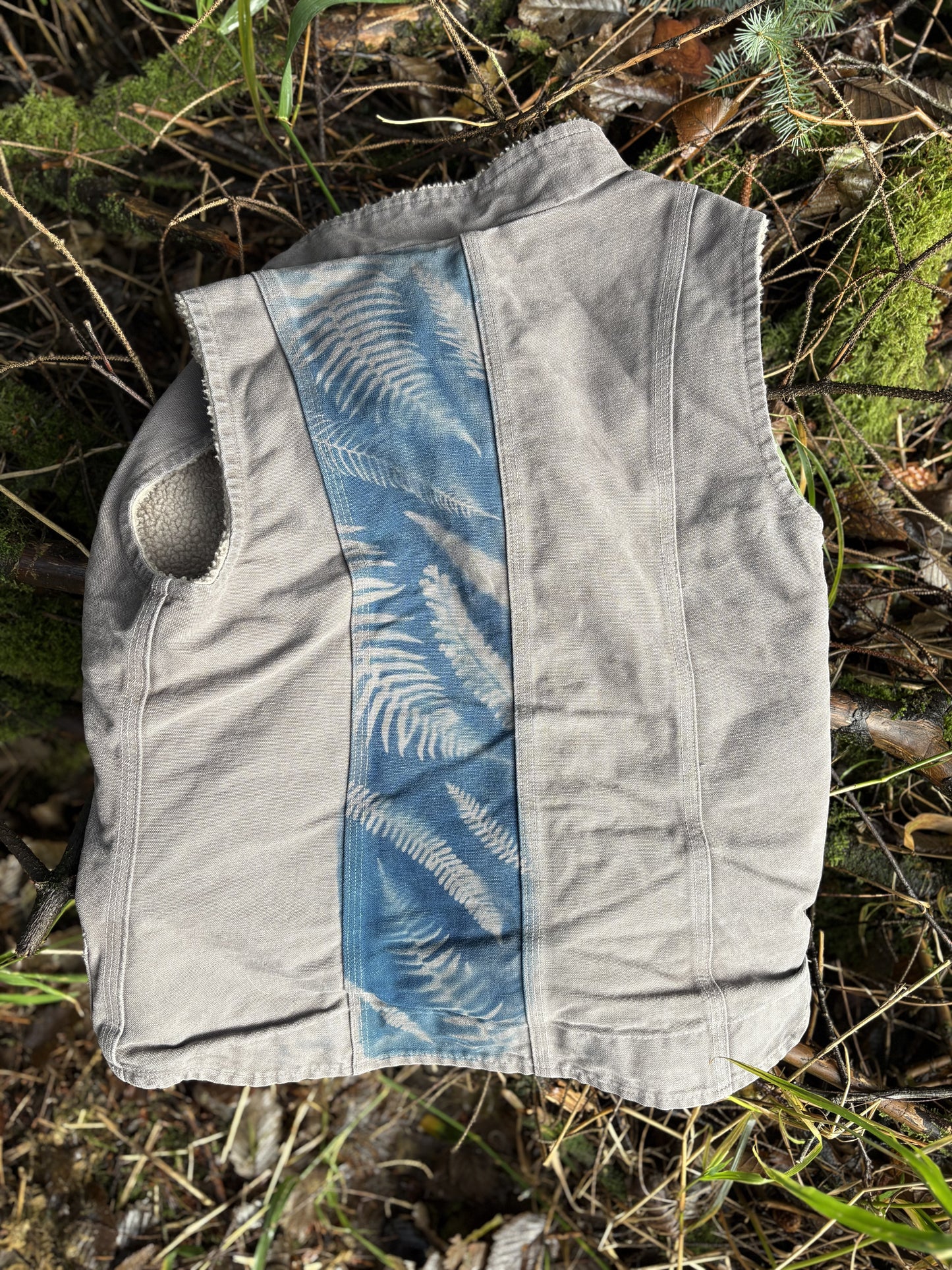 Women’s upcycled cyanotype carhartt Sherpa vest- light grey. Medium (8/10)
