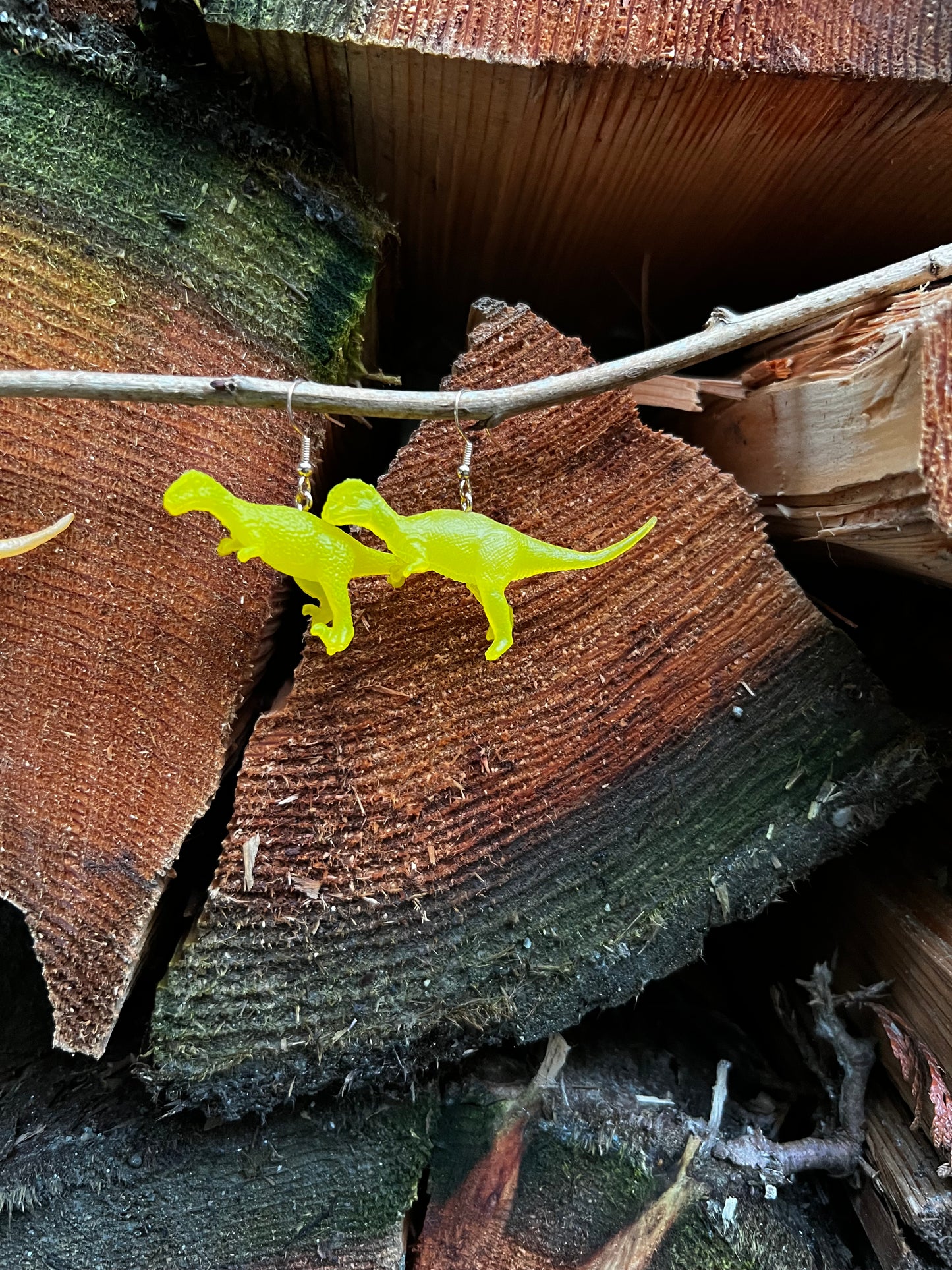 Rose gold hypoallergenic earring hooks. Glow in the dark dinos